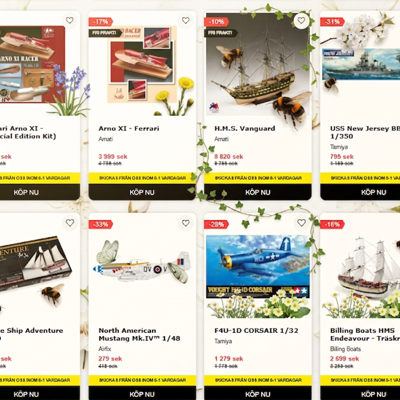 Hos oss hittar du noggrant utvalda produkter inom modellbygge, brädspel, pyssel, samlarprylar och mycket mer. Vårt sortiment är skapat för att inspirera både nybörjare och erfarna entusiaster inom alla åldrar.