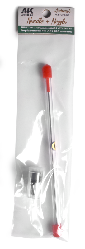 Needle + Nozzle 0.2 Top Line är ett ersättningskit som låter dig förvandla din AK9600 0.3 airbrush till en 0.2-modell. Perfekt för detaljerad målning där hög precision krävs.