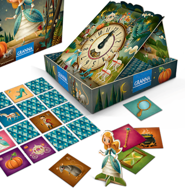 Klockan tickar mot midnatt och Askungen behöver hitta alla sina saker för att kunna gå på kungens bal. I det här spelet, som kombinerar klassisk Memory-mekanik med en spännande tärningsfunktion, ska spelarna tillsammans hitta matchande par av brickor. På brickorna finns allt det som behövs för den stora kvällen.