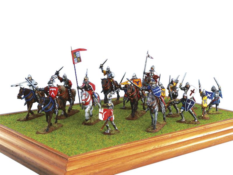 Kitet innehåller modeller av en medeltida fästning med figurer och stormningsenheter.