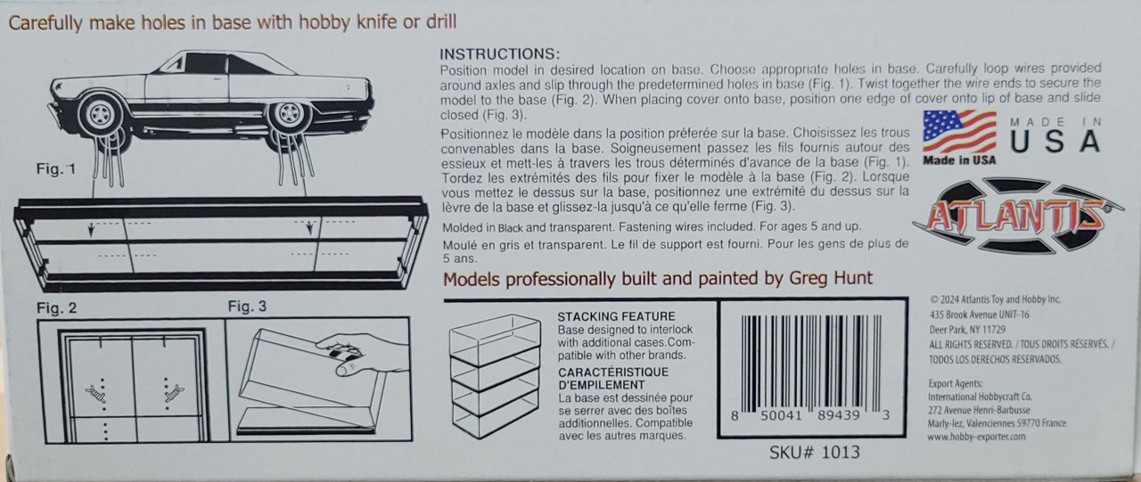 Detta extra höga displayfodral är stapelbart och skyddar modeller samtidigt som den dekorativa cobblestone-basen skapar känslan av en riktig gata. Fodralet är tillverkat i svart och genomskinlig plast med konturerat lock, vilket ger en stilren och realistisk presentation för 1:24–1:25 skala-modeller.
