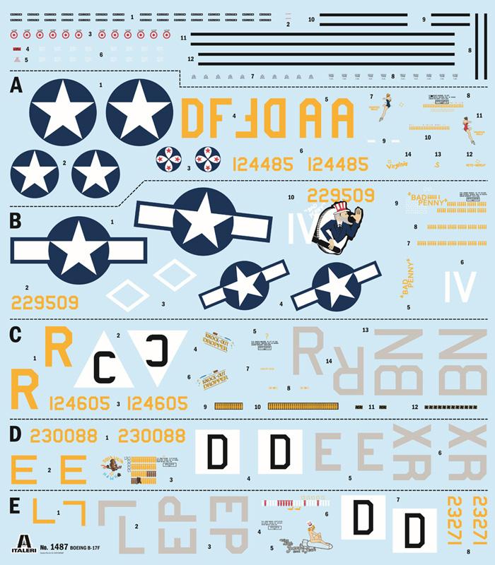 - Superdekalark för fem versioner: Gör det möjligt att anpassa modellen efter olika B-17F-variationer.