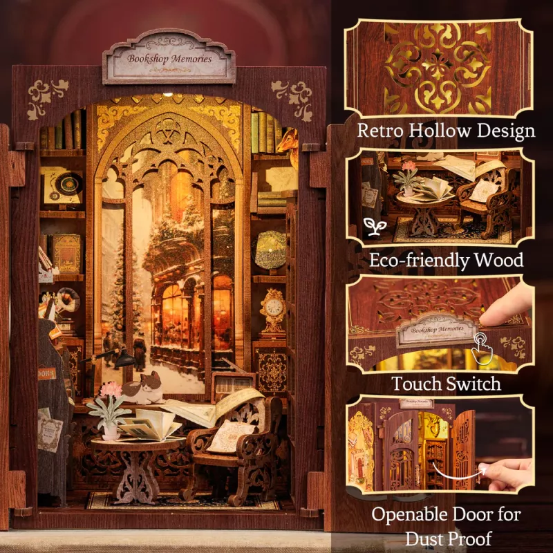 Bookshop Memories – Magisk DIY Book Nook låter dig skapa en vintageinspirerad miniatyrbokhandel som förvandlar din bokhylla till en nostalgisk och förtrollande bokvärld. Här är en närmare titt på vad denna byggsats erbjuder: