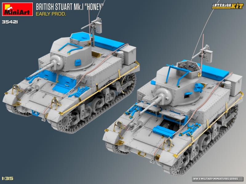 Detta kit innehåller den brittiska Stuart Mk.I “Honey” tidig produktion – interiörkit i skala 1:35.