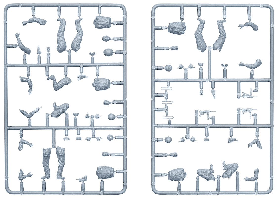 Förpackningen innehåller modeller av fem figurer med vapen.