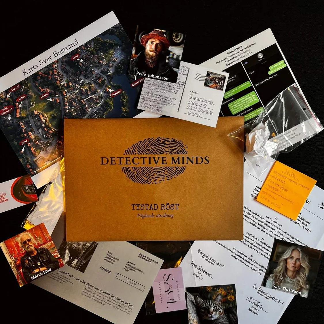 I Tystad Röst kliver du och dina vänner in i rollen som utredare för att lösa ett fall som polisen inte lyckats knäcka. Du får hem en hel akt fylld med realistiskt bevismaterial – allt från polisförhör och fotografier till personliga tillhörigheter och krypterade meddelanden. Med en svårighetsgrad på 3 av 5 är detta den perfekta introduktionen till "Cold Case"-spel, eller en utmärkt utmaning för en spelkväll som kräver logiskt tänkande och skarpa ögon.