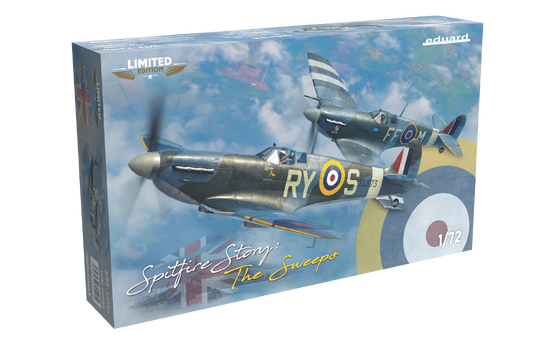 SPITFIRE STORY – The Sweeps DUAL COMBO 1/72 är ett exklusivt limited edition-modellkit som skildrar Supermarine Spitfire Mk.Vb och de intensiva luftstriderna över det ockuperade Västeuropa under andra världskriget. Detta dubbelkit i skala 1/72 låter dig bygga två Spitfires flugna av piloter från olika nationaliteter som tjänstgjorde inom RAF.