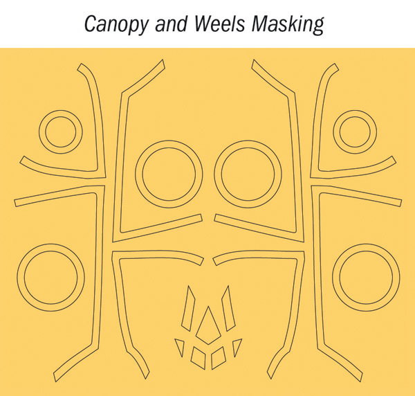 - Fotograverade detaljer och maskeringsblad för canopy och hjul