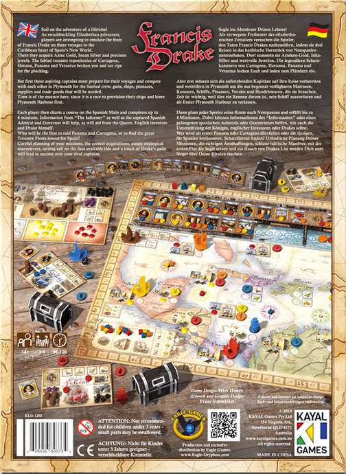 Engelsk-tysk utgåva av strategibräspelet Francis Drake.