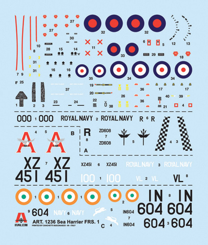 The British Aerospace Sea Harrier was a VTOL / STOVL (Short take-off and vertical landing) capable fighter, developed to equip the air arm sections of the British Royal Navy. It entered into service during the late ‘70s and early ‘80s with the main operational role of fleet air defence aircraft. In 1982 it was deployed on HMS Invincible and HMS Hermes during the Falklands war, fully demonstrating its operational effectiveness during the conflict. Unable to match the speed and flight characteristics of opposing aircraft such as the Mirage 111, it was nevertheless extremely manoeuvrable and reliable in all operating conditions. The Sea Harrier was equipped with an effective offensive armament capability, consisting of two 30mm ADEN guns installed in pods under the fuselage and by 4 sub-wing hardpoints to launch air-to-air missiles.