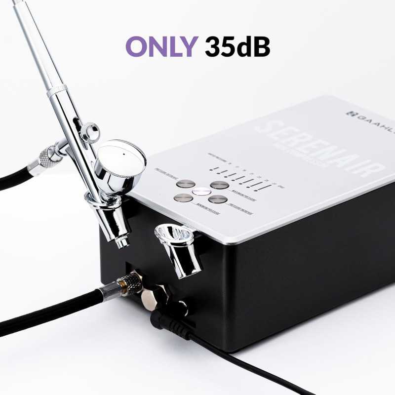 Gaahleri Serenair Airbrush Kit med Kompressor är ett komplett och portabelt airbrush-kit designat för hobbyister, konstnärer och modellmålare. Med allt-i-ett-lösning innehåller kittet en mini-kompressor, högkvalitativ airbrush, luftslang och hållare – redo att användas direkt ur lådan. Den kompakta och eleganta designen gör kittet perfekt både för nybörjare och erfarna målare som vill ha en mobil och pålitlig lösning.