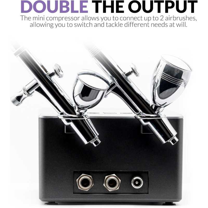 - Dubbel airbrush-utgång för två airbrushes samtidigt