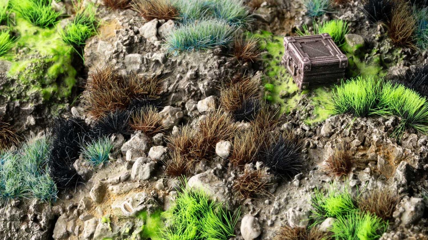 Detta grästuveset, med sina grönaktiga utomjordiska färger, från bränd till giftgrön, kan användas för att simulera scenarier med kontaminerad vegetation. Setet är perfekt för att skapa giftiga ödemarker, förstörda radioaktiva farozoner, utomjordiska biohazard-miljöer och andra infekterade habitat.