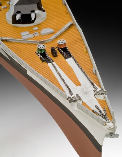 What makes this model kit truly unique are its myriad special features. The highly detailed design of the hull and propulsion shafts gives the model an unparalleled authenticity. The individually movable 38 cm gun turrets and the numerous anti-aircraft guns make the heart of every precision engineer beat faster. In addition, the optional open or closed aircraft hangar doors provide an extra dose of realism.