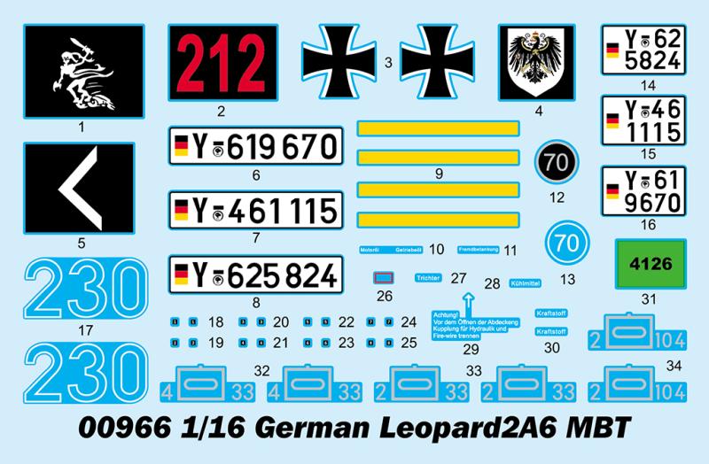 Leopard 2A6 MBT är en detaljerad plastbyggsats i skala 1:16 som återger den moderna tyska stridsvagnen Leopard 2A6. Leopard 2 introducerades 1979 som tredje generationens huvudstridsvagn, med kraftfull 1500 hk-motor, 120 mm Rh-M-120 kanon och utmärkt pansarskydd. Versionen A6 har längre kanonrör (L/55) vilket ökar penetrationsförmågan och gör den till en av de mest respekterade stridsvagnarna i världen.