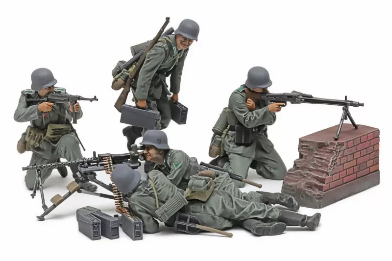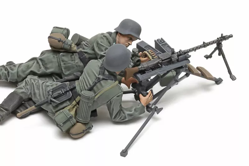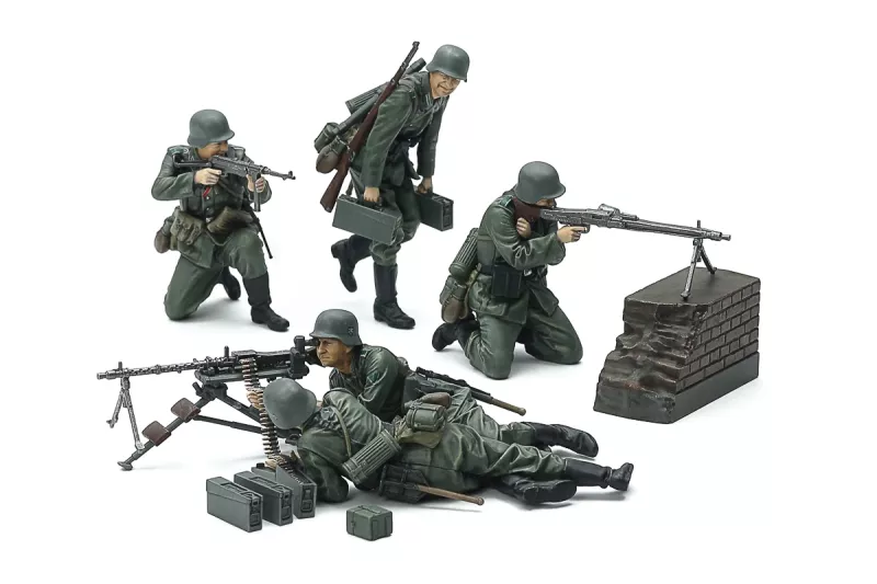 Item 35038 1/35 German Machine Gun Troops has been popular among modelers for a long time since its release in 1974; now, Tamiya welcomes a companion set of German Machine Gun Troops recreated by cuttingedge molding technology.