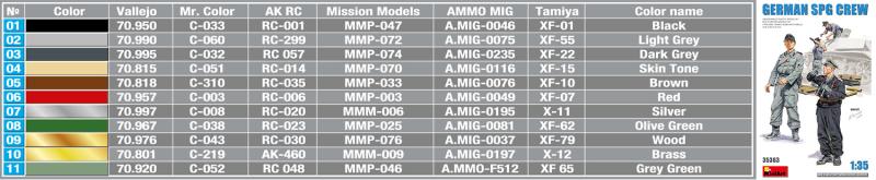 "German SPG Crew" är en modellfiguruppsättning i skala 1:35 från MiniArt. Uppsättningen innehåller fyra tyska soldatfigurer som är utformade för att passa i en självgående artilleriplattform (SPG). Figurerna är klädda i typiska uniformer och utrustade med olika vapen och verktyg. Uppsättningen ger modellbyggare möjlighet att lägga till en extra nivå av detaljer och realism till sina 1:35 skalamodeller av tyska SPG:er från andra världskriget.
