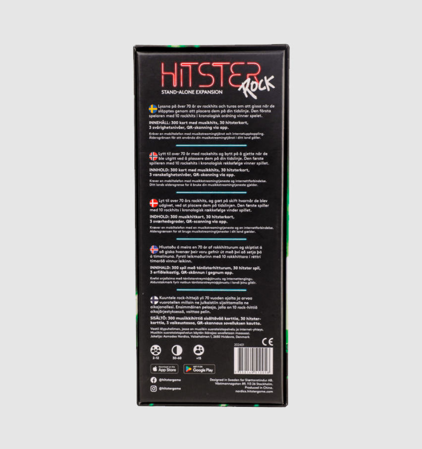 Starta rockfesten med Hitster: Rock (2024), ett musik- och partyspel på svenska där du och dina vänner turas om att placera rockhits på en tidslinje!