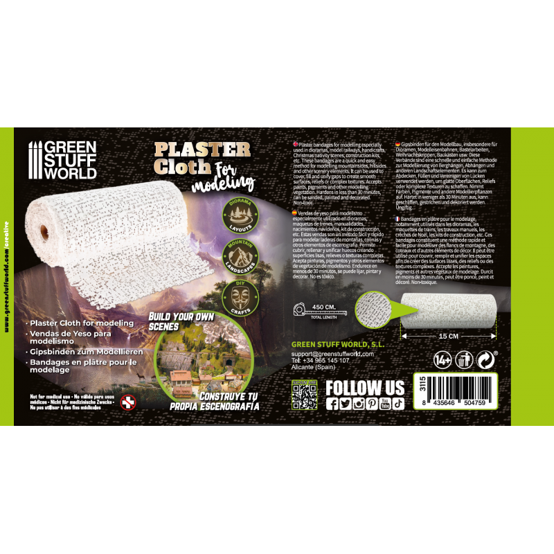 Plaster cloth is a material used for modeling, crafting, and school projects because it is lightweight, easy to shape, and durable, which makes it the most common and practical way to create realistic and light relief on dioramas, as well as three-dimensional sculptures.