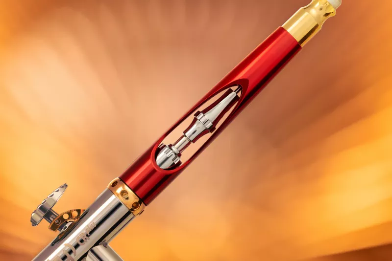 TITANIUM Infinity-huvudet med 0,25 mm munstycke levererar detaljnivåer som aldrig tidigare setts från en airbrush. Baksidan är inspirerad av EVOLUTION 2024, men ytterligare förfinad för att bli det ultimata verktyget för precisions- och detaljarbete.
