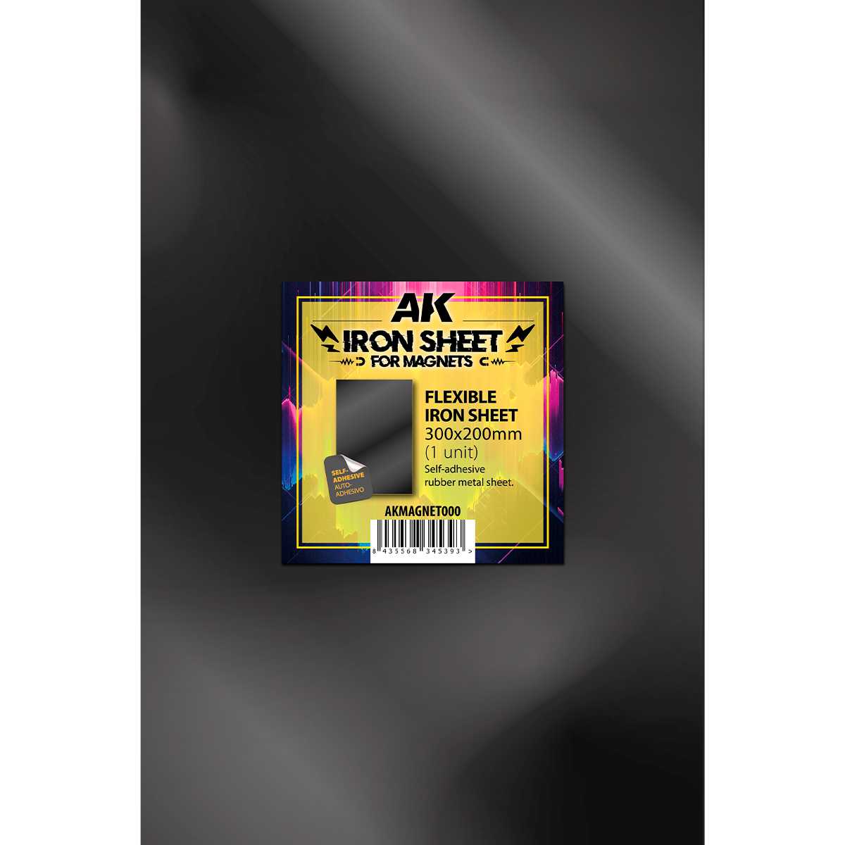 Flexibel självhäftande metallplatta i gummi med järnpartiklar för fastsättning av magnetiserade miniatyrer eller magneter.