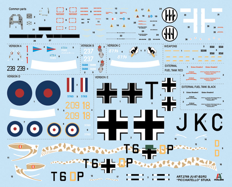 JU 87 B-2/R-2 ”Picchiatello” – klassisk Stuka-modell från WWII med fotoets och dekaler för 5 versioner.