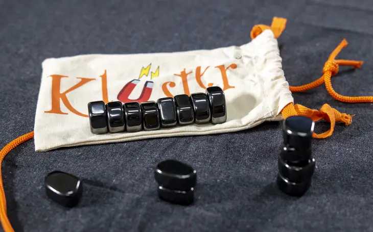 I Kluster delas de magnetiska stenarna lika mellan spelarna. Turas om att placera en sten inom området som avgränsas av snöret. Första spelaren som blir av med alla sina magneter vinner – men se upp! Om stenarna klumpar ihop sig under din tur måste du samla upp dem igen. Reglerna är enkla och kan förklaras på nolltid, vilket gör spelet tillgängligt för alla åldrar.