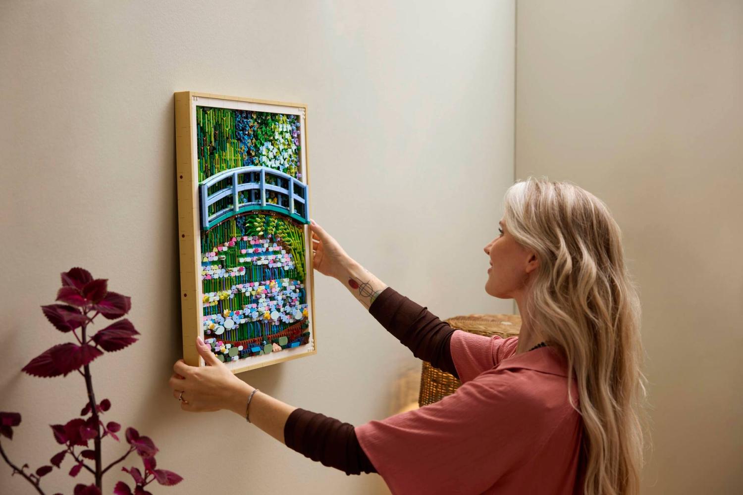 Denna klossbyggda tolkning av Monets klassiker från 1899 hyllar originalets rika textur och färger. Genom att använda LEGO-delar på oväntade och innovativa sätt – såsom fjärilar, körsbär och till och med sköldar – väcks näckrosdammen och den ikoniska bron i Giverny till liv. Det är inte bara en modell, utan en djupdykning i Monets konstnärskap som ger ditt hem en sofistikerad och naturinspirerad atmosfär.