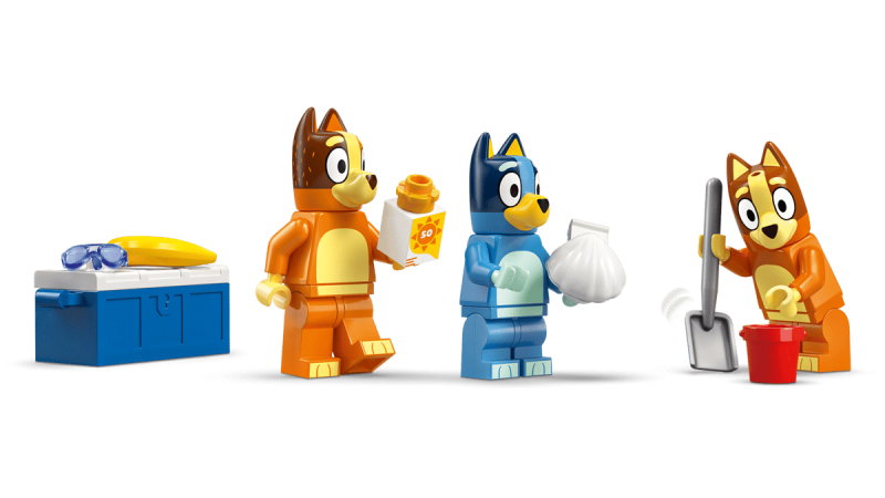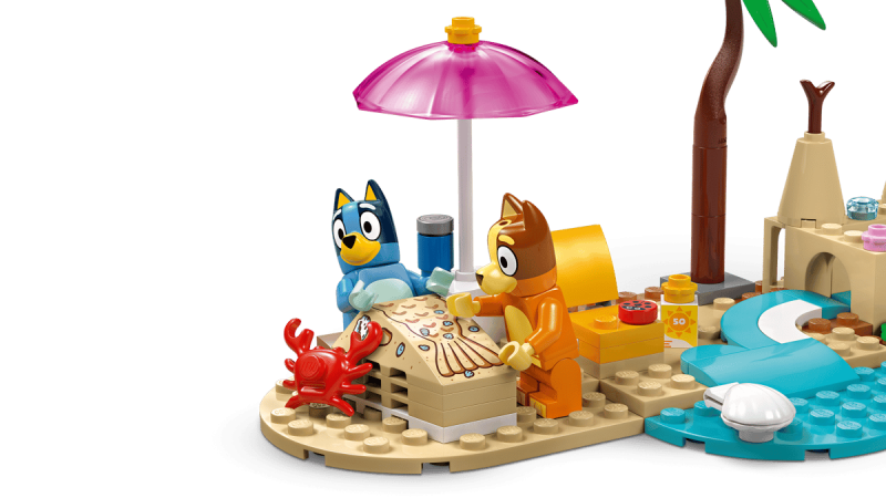 - Innehåller minifigurer Bluey, Bingo och Chilli samt handgripliga detaljer som krabba, glass, solglasögon och solkräm