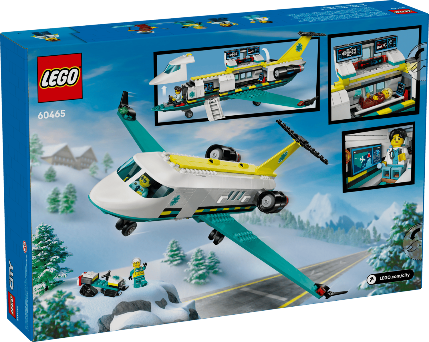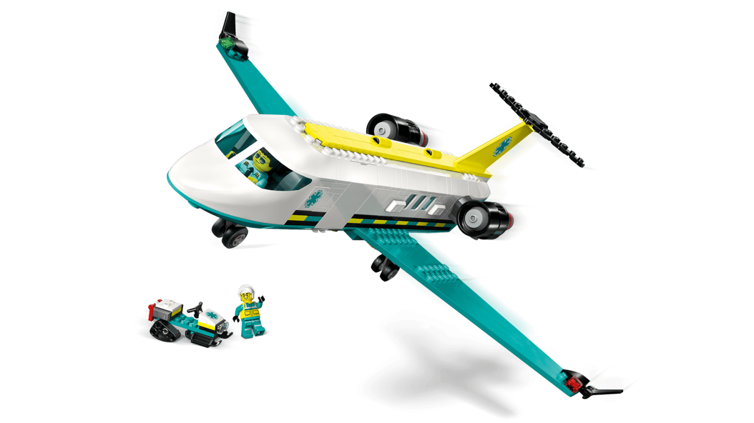 LEGO® City Ambulansflygplan – tvåmotorigt räddningsplan med minifigurer och medicinskt labb, från 6 år.