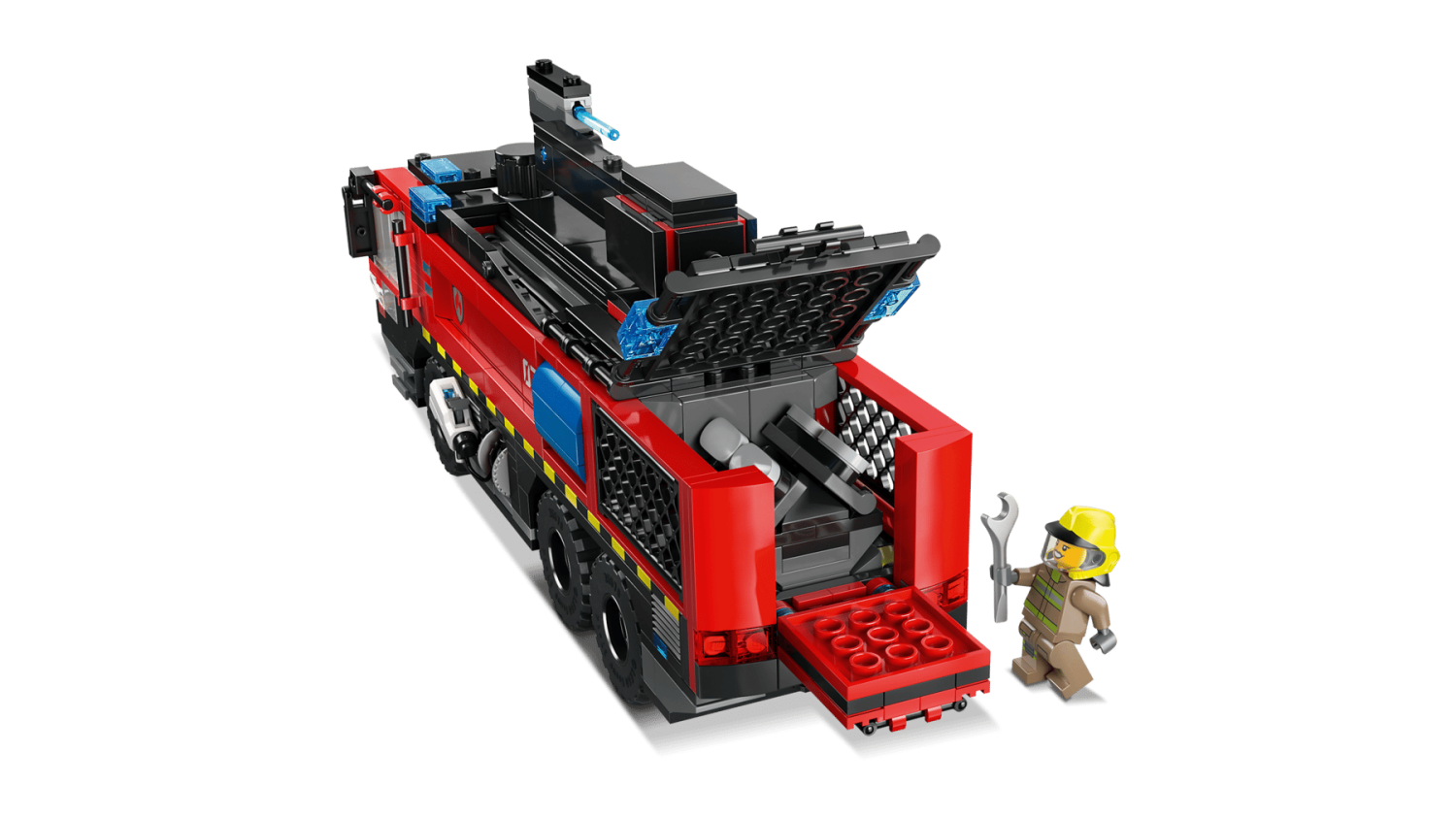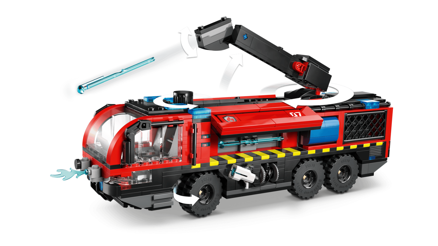 Barn kan sätta de 4 brandmansminifigurerna i cockpiten, vrida på ratten för att styra, spruta vattendelar och ta loss motorn för roliga reparationsuppdrag. Setet stimulerar kreativ och handgriplig lek.