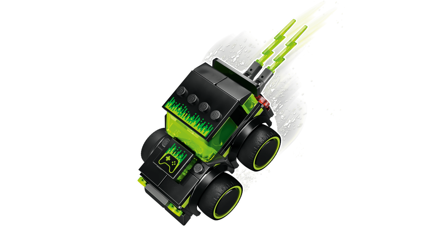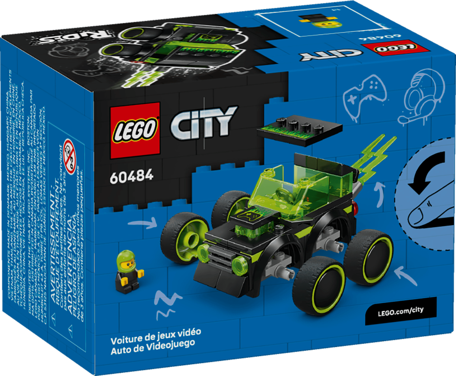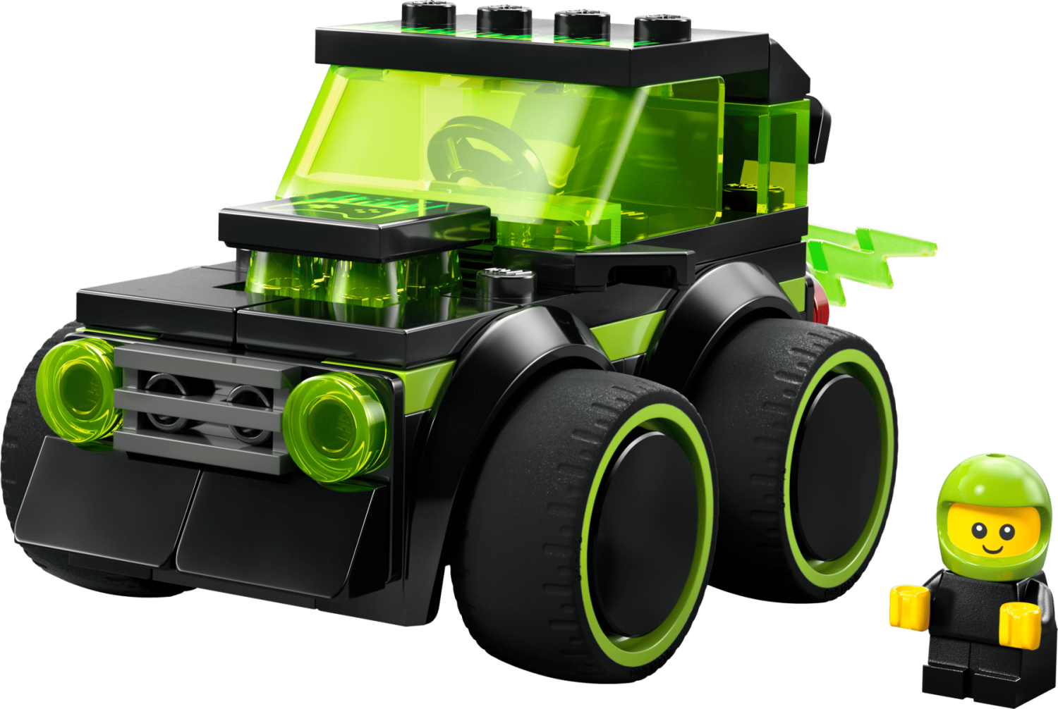 - Funktioner: Spelracerbil med neonmönster, stora gummidäck och juniorminifigur