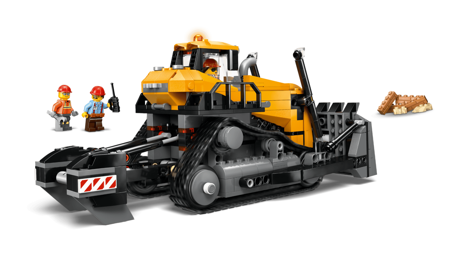 LEGO® City Gul bulldozer med höjbart schaktblad, rörliga kolvar och 3 minifigurer, från 8 år.