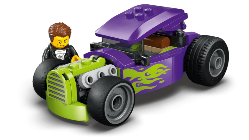 LEGO® City Hotrod är perfekt för unga racerbilsälskare som vill kombinera byggande med spännande lek. Barnen kan lyfta på bilens tak, placera minifiguren bakom ratten och låtsasköra i fartfyllda racescener. Setet kan kombineras med andra LEGO® City set (säljs separat) för ännu mer racingaction och kreativa historier.