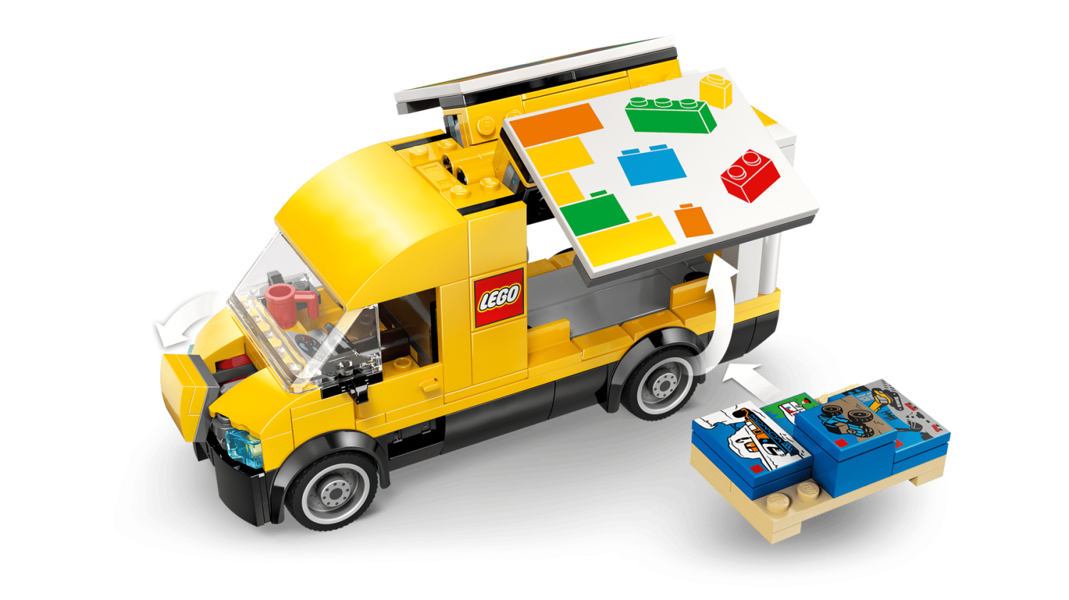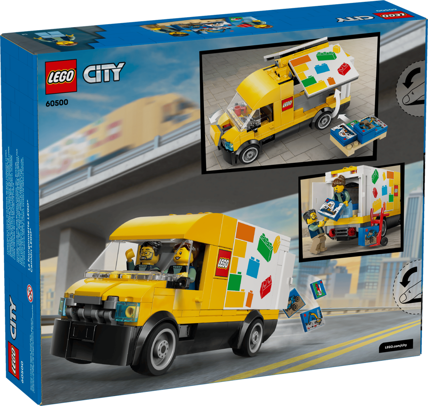 LEGO® City Skåpbilen (60500) levererar timmar av fantasifulla lekar för barn från 6 år. Budbilen har öppningsbara sidor, bakdörrar och motorhuv så barn kan leka med lastutrymmet och motorrummet.