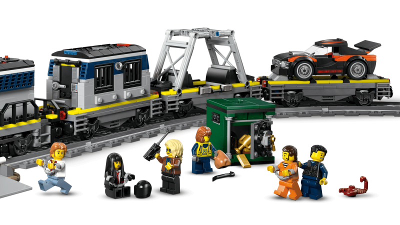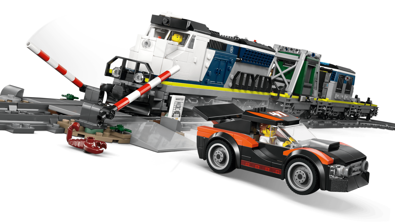 - LEGO® City Polis – tågrån med motoriserat tåg, helikopter, rallybil, tågspår och 6 minifigurer