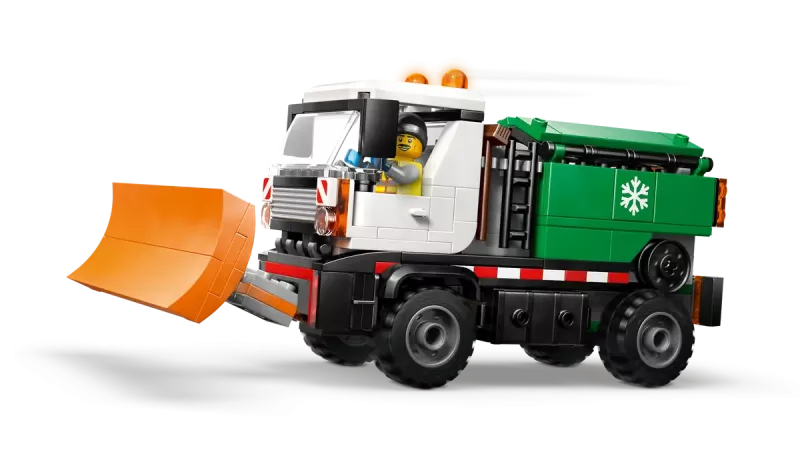 LEGO® City Snöplog – bygg och lek med plogbil, saltspridare och förarminifigur för barn 6+.