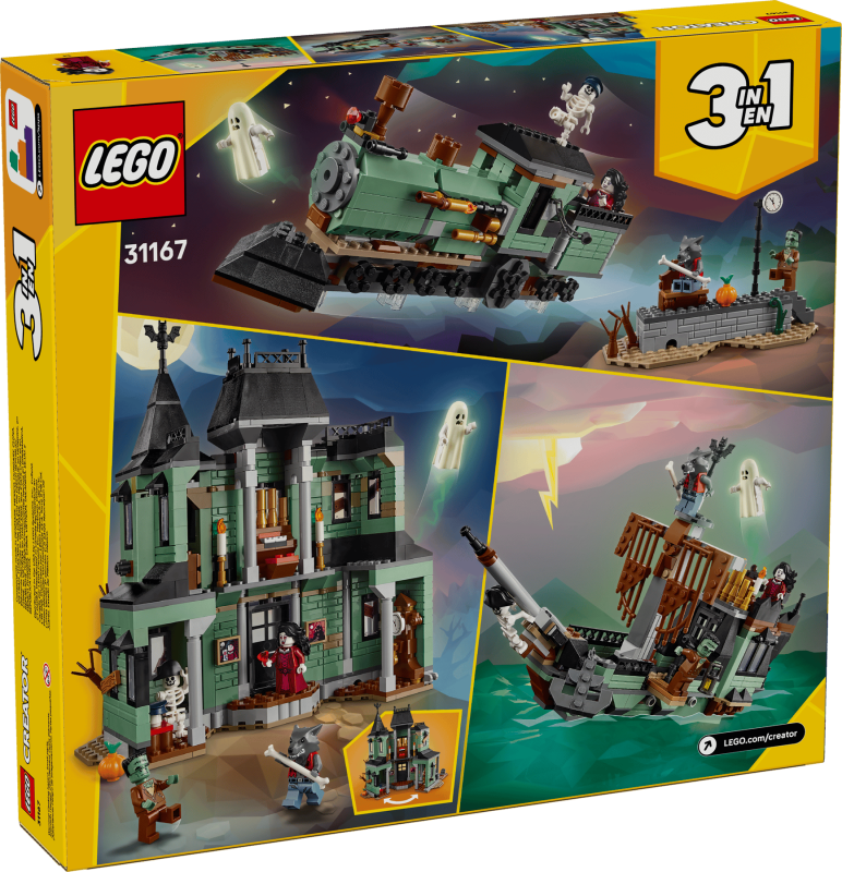LEGO® Creator 3in1 Hemsökt herrgård är ett spännande byggset som inspirerar barns fantasi och kreativitet. De tre byggalternativen erbjuder oändliga lek- och berättelsemöjligheter. Perfekt som present till barn som gillar läskiga historier, hus, tåg och skepp.