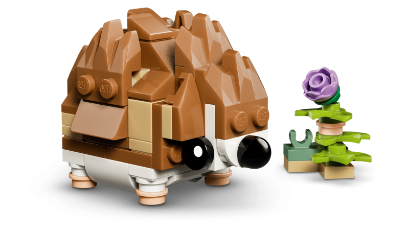 Hamstern har rörligt huvud och framben, fågeln kan röra sina vingar och igelkotten kan stå på fyra ben. Efter lek kan modellerna visas upp som charmiga rumsprydnader på hyllor eller skrivbord. Med LEGO Builder-appen kan barn följa 3D-instruktioner, zooma, rotera och spara sina byggframsteg.