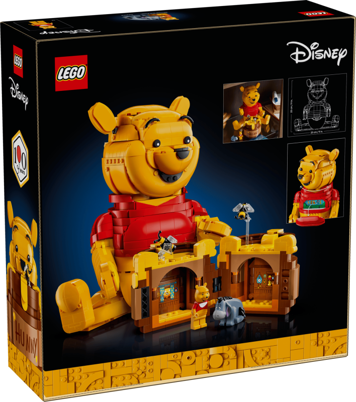 LEGO® ǀ Disney Nalle Puh (43300) låter vuxna från 18 år bygga och visa upp den klassiska Disneyfiguren Nalle Puh i ett jubileumsset som hyllar 100-årsjubileet. Setet innehåller 1 399 delar, inklusive Nalle Puh med rörliga armar, händer, huvud och öron, byggbar honungsburk och överraskningar med LEGO® ǀ Disney karaktärerna Nalle Puh och Ior.