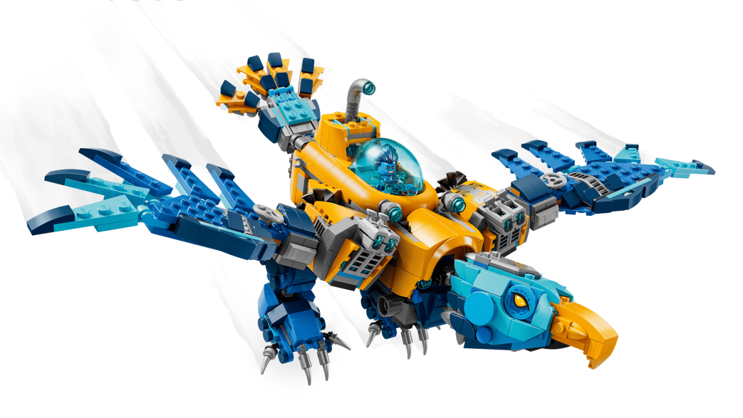 - Rörliga delar: krokodilläget har ben, huvud och svans; örnläget har vingar och vingfjädrar