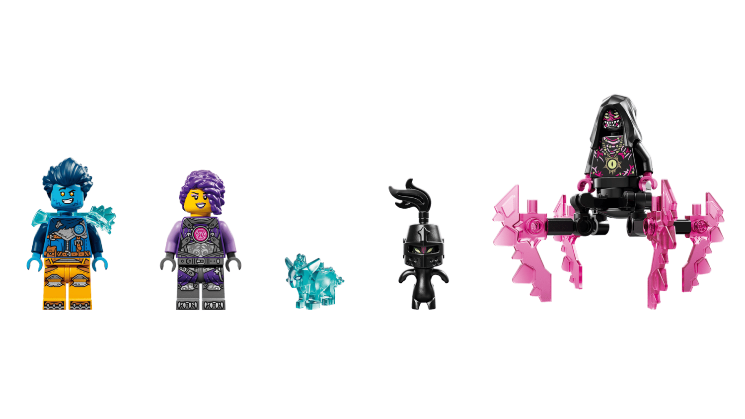 - Innehåller minifigurer: Logan, Zoey, Arika, Grimspawn, 2 spindlar och samlarfigur av blå skattvarelse