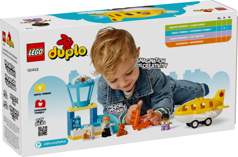 Detta LEGO® DUPLO® flygplatsset är utformat för små barn som vill upptäcka världen genom lek. Pedagogiska funktioner som känslohjul, flygledartorn och rörligt flygplan uppmuntrar fantasi, social interaktion och problemlösning. Perfekt som födelsedagspresent eller överraskning för barn från 2 år.