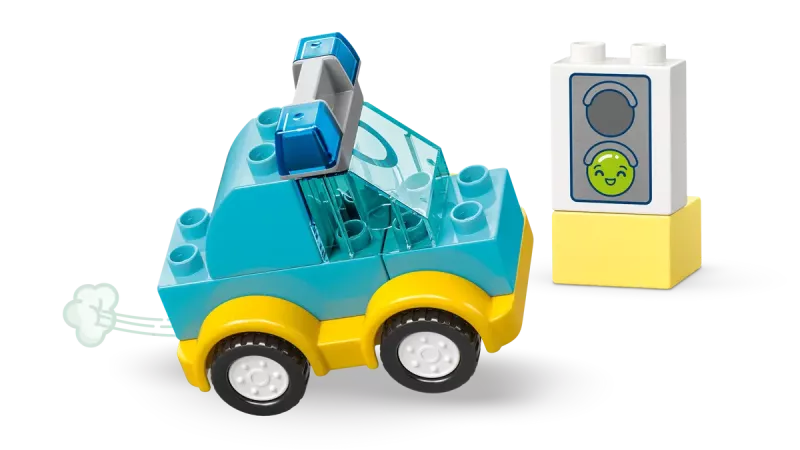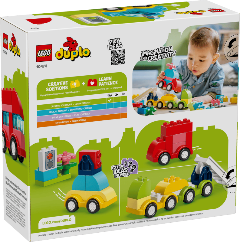 Efter det kan små byggare använda sin finmotorik och öga-hand-koordination för att ta loss klossarna från fordonen och med extra klossar bygga helt nya kreativa skapelser. Från polisbilar till superlånga lastbilar eller dubbeldäckare – LEGO DUPLO utvecklande leksaker hjälper små barn att ta sina första självsäkra steg i LEGO-byggandet, samtidigt som de har roligt och lär sig problemlösning, tålamod och kreativitet.