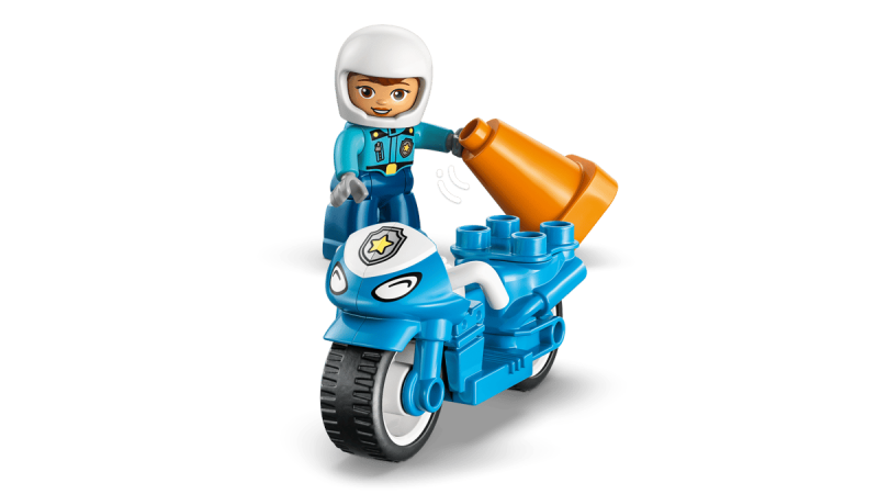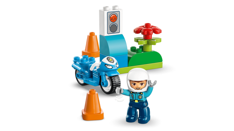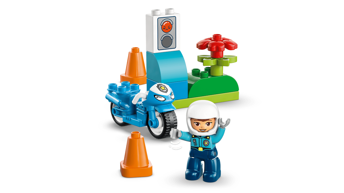 LEGO® DUPLO® Town Blå polismotorcykel – Pedagogiskt byggset med polisfigur, trafikljus och koner för barn från 2 år.