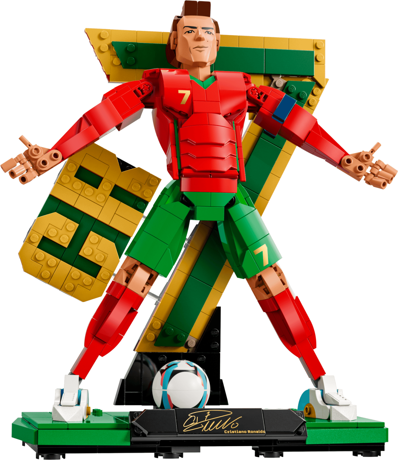 Bygg CR7 i LEGO®! Detaljerad figur med två ikoniska poser – perfekt samlarset för fotbollsfans från 12 år.