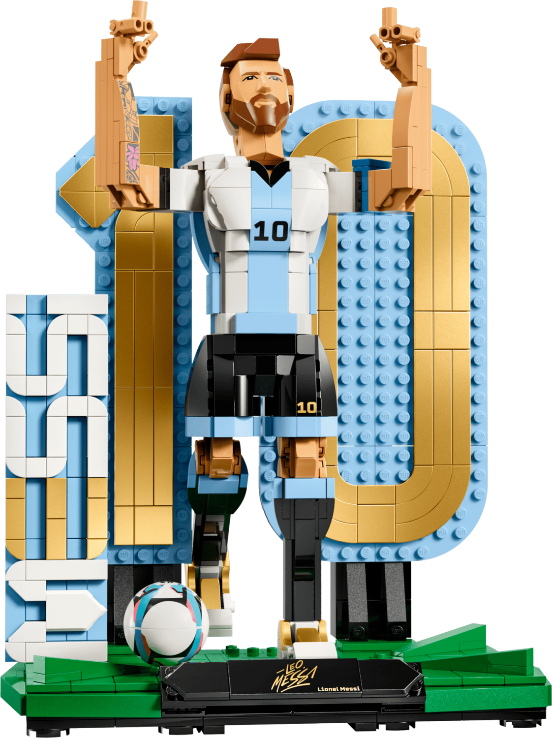 Bygg Lionel Messi i LEGO®! Detaljerad samlarmodell med två poser – perfekt för fotbollsfans från 12 år.