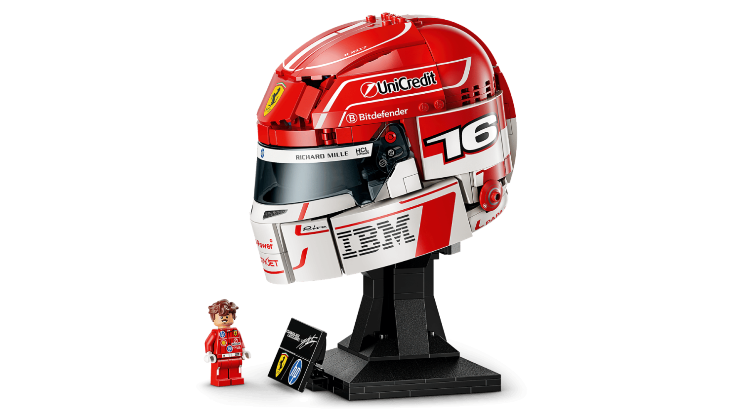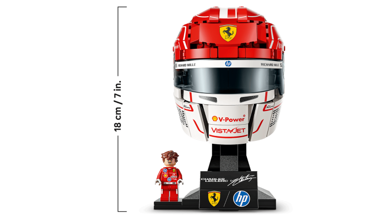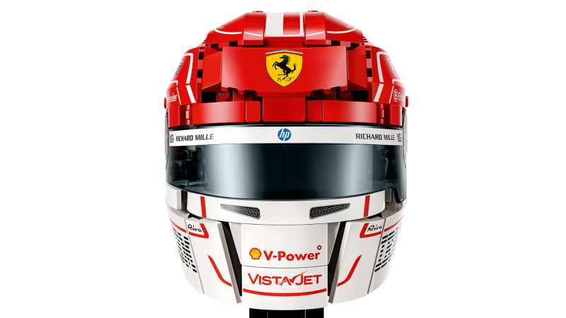 Bygg ikonen! LEGO® Scuderia Ferrari HP Charles Leclerc hjälm med minifigur och autentiska detaljer. Perfekt för F1®-fans och samlare. 886 delar.