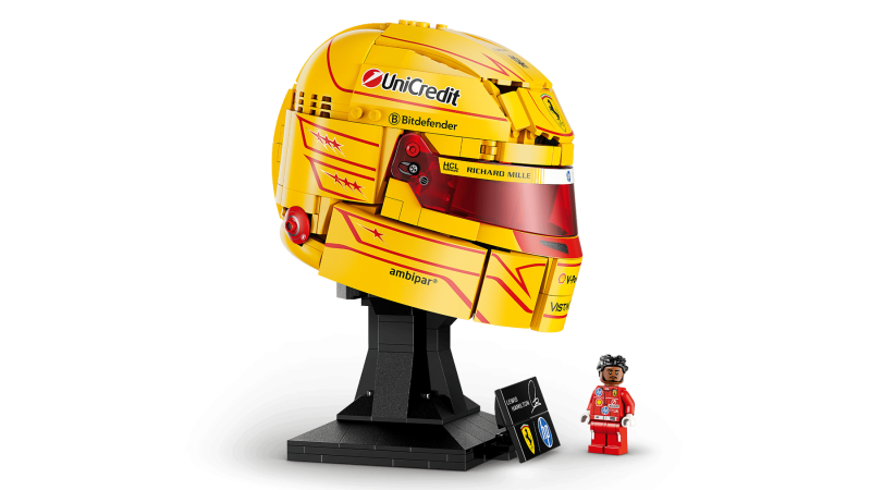 - Exklusiv Lewis Hamilton-minifigur: Setet innehåller en unik minifigur av Lewis Hamilton iklädd sin röda Scuderia Ferrari HP-racingdräkt, vilket gör modellen till ett komplett samlarobjekt.