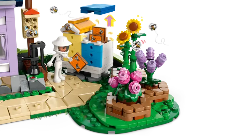 LEGO® Friends Biodlarhus och blomsterträdgård erbjuder en otrolig byggupplevelse där barn kan lära sig om biodling, sköta om trädgården och skapa egna berättelser om naturen och vänskap.